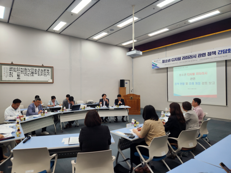 [부산 세계타임즈=이용우 기자] 부산광역시의회 의원연구단체 ‘부산역(부산시민이 행복할 수 있도록 역할을 하는 모임)’은 오늘(24일) 시의회 중회의실에서 「청소년 디지털 리터러시 향상을 위한 정책 간담회」를 개최했다.