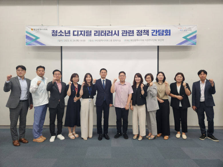 우리나라 청소년 디지털 문해력이 OECD 평균인 47%보다 낮은 25.6%로 최하위 그룹에 속한다는 문제점을 지적하고 부산시와 교육청을 상대로 대책을 강구했다. 이에 의원연구단체 ‘부산역’ 의원들은 미래세대인 청소년의 통합적 문해 능력인 ‘디지털 리터러시’ 역량 향상의 필요성을 공감하고 의원연구단체 정책 간담회 개최를 통해 대책 마련에 나섰다.