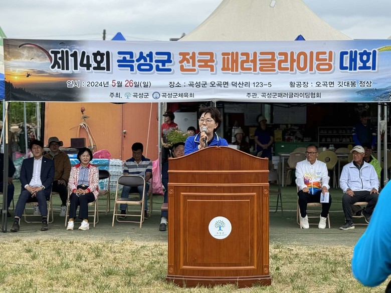 권향엽 당선인은 축사를 통해 “곡성은 사계절 내내 부드러운 바람이 불어 패러글라이딩을 하기에 천혜의 자연 조건을 갖춘 곳이다”며, “안전과 지원을 위해 힘써주시는 관계자 여러분께 감사드리며 오늘 대회가 여러분들에게는 행복한 시간이 되길 바란다”고 밝혔다.