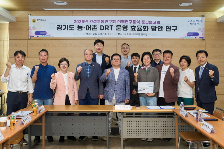 [경기도 세계타임즈=송민수 기자] 경기도의회 건설교통연구회(회장 허원 건설교통위원장)는 10일 경기도 내 농·어촌 DRT(똑버스)운영 효율화 방안 연구용역의 중간보고회를 개최했다.