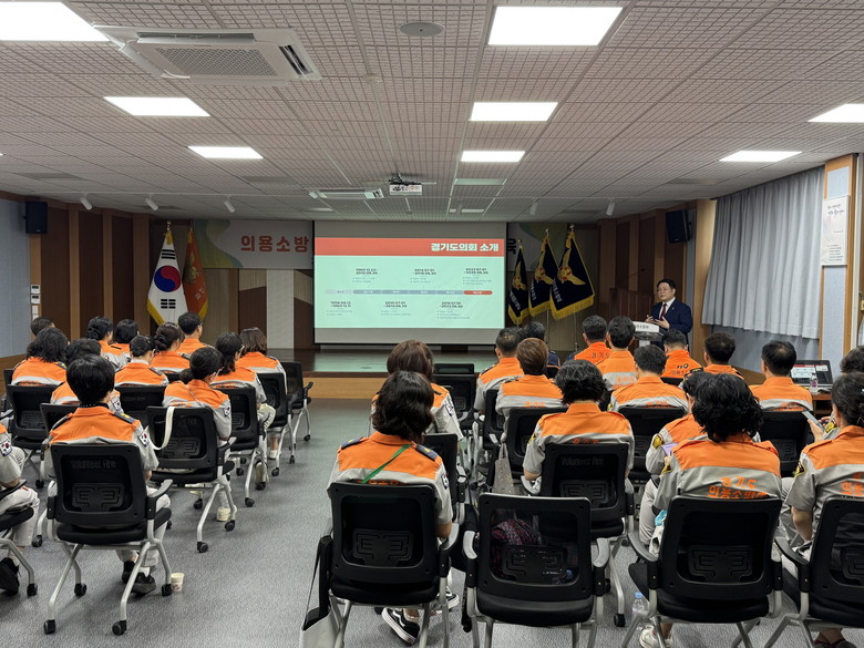 강연은 △경기도의회 소개 △도의회 역할 △의용소방대의 현황 △미래 발전 과제 등 네 가지 주제로 구성됐다.