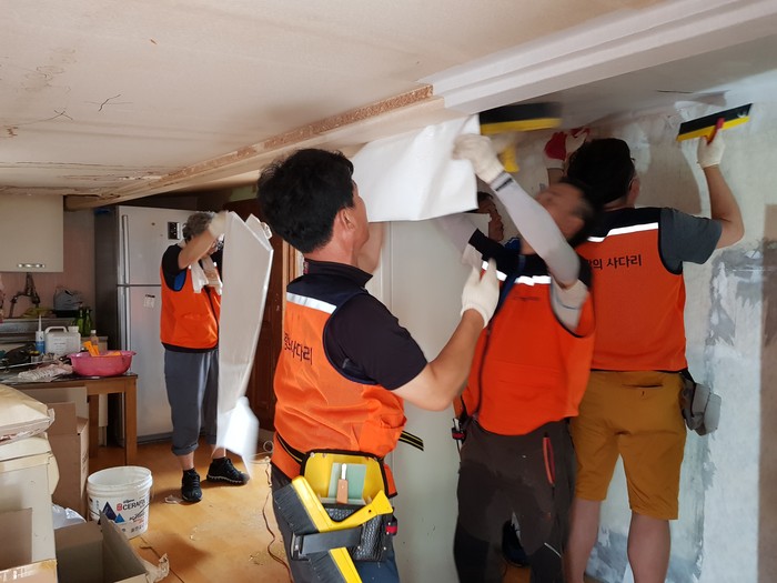 김호현 이사는 "어려운 환경의 학생 가정에게 도배 봉사 후 깨끗하게 바뀐 환경을 보니 행복과 보람을 느낀다 "고 말했다.