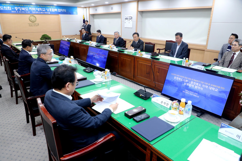 [충북 세계타임즈=이현진 기자] 충북도의회(의장 황영호)는 24일 청주대학교 대회의실에서 도내 17개 대학과 지역대학 발전을 위한 상호협력 협약을 체결했다.