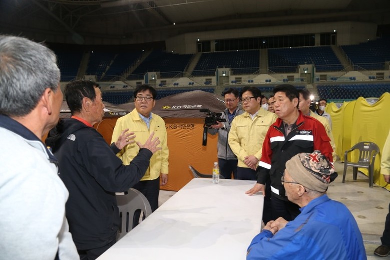 또한, 이재민들의 임시거처가 마련되어 있는 강릉 아이스아레나를 방문하여 주민들을 위로하고 애로사항을 청취하고, 주민들 생활에 불편함이 없도록 조치해 달라고 주문하였고, 이어서, 산불피해 현장을 방문하여 응급복구 인력들을 격려하였다.