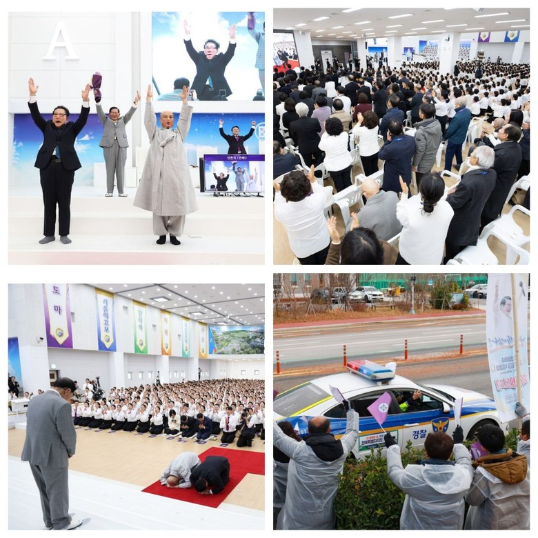 주목할 만한 것은 이날 목회자와 스님이 이 총회장께 꽃다발을 전달하고 큰절을 올렸으며, 만세삼창으로 이 총회장에게 감사의 마음을 전했다. 목회자석에 참석한 목회자들도 기립박수로 뜻을 같이했다.