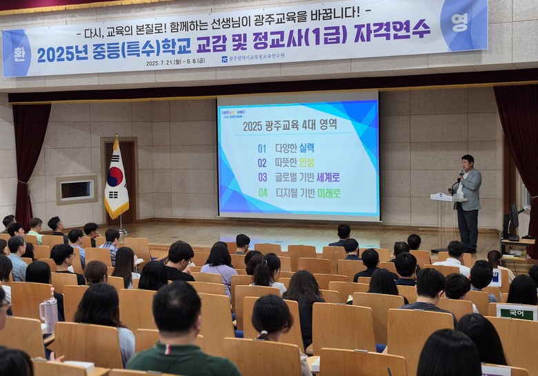 [광주 세계타임즈=손권일 기자] 광주광역시교육청교육연수원(이하 광주교육연수원)은 21일부터 오는 8월 14일까지 본원 다목적실 등 8곳에서 ‘2025년 하계 정교사(1급) 및 교감 자격연수’ 과정을 운영한다.