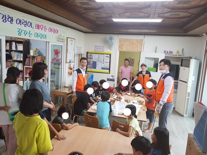 이날 봉사에는 더운날씨에도 자원봉사자 20명이 참석해서 유성구 진잠일대에 위치한 하늘꿈, 원내, 진잠, 참사랑, 대정 5곳의 170명 자역아동센터 아이들 저녁시간에 바베큐 통닭을 전달하였다.