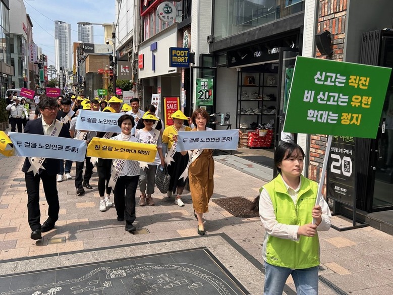 이번 거리행진은 도민들이 노인학대 문제의 심각성을 인식하고, 예방을 위한 실질적인 노력을 기울일 수 있도록 ‘한 걸음 노인 학대 예방, 두 걸음 노인 인권 존중’이라는 캐치프레이즈를 걸고, 성안길 일원에서 진행됐으며, 충북지방경찰청, 대한노인회 충북연합회, 한국장기요양기관협회 충북지부, 노인학대모니터링단, 기타 인권보호 협약기관*을 비롯한 대학생 등 120여명이 함께 참여했다.