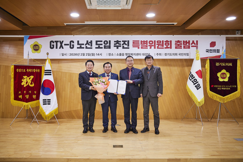 ‘경기도의회 국민의힘 GTX-G 노선 도입 추진 특별위원회’는 포천을 기점으로 경기 서북부와 서울 강남, 인천을 잇는 ‘수도권 광역급행철도 G선(GTX-G)’의 조기 도입을 효과적으로 추진하기 위해 출범했다. 경기도가 지난 2024년 ‘GTX 플러스 노선’으로 제안한 GTX-G는 포천 송우에서 의정부·남양주·구리를 거쳐 건대입구·논현·사당을 지나 KTX 광명역과 인천 숭의까지 약 84.4㎞를 연결하는 광역철도망이다. 현재 포천시를 중심으로 해당 노선의 ‘제5차 국가철도망 구축계획’ 반영이 촉구되고 있으며, 관련 논의 활성화를 위한 정부·지자체·지방의회 등 관계기관 간 협력체계 가동이 요구되는 상황이다.