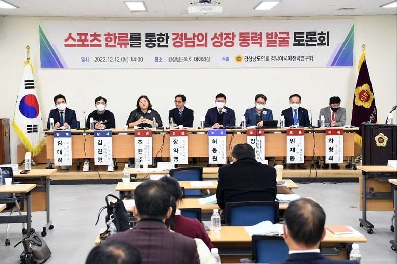 경상남도의회 의원 연구단체인 경남아시아전략연구회(회장 허동원 의원, 이하 ‘연구회’)는 12일 경상남도의회 대회의실에서 ‘스포츠한류를 통한 경남의 성장동력 발굴’을 주제로 토론회를 열었다.
