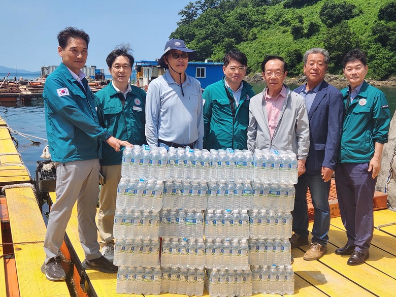 이날 통영수협과 (사)한국수산업경영인통영시연합회에서 가두리양식장을 함께 방문해 현장 근로자의 온열질환예방을 위한 생수 20박스를 제공했다.