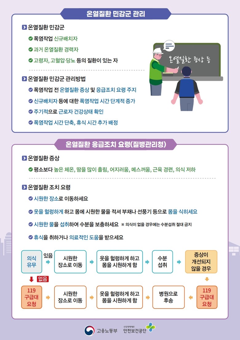 야외작업이 많은 업종이나 고온의 환경에서 일하는 현장의 경우 근로자의 건강과 안전에 각별한 주의가 필요하다며, 철저한 온열질환 예방 지침 준수도 강조했다.