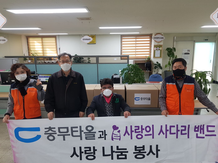 충무타올과 사랑의 사다리 밴드는 대전시 소외계층을 위해서 월1회 정기적으로 고급타올 나눔후원을 펼치고 있다.