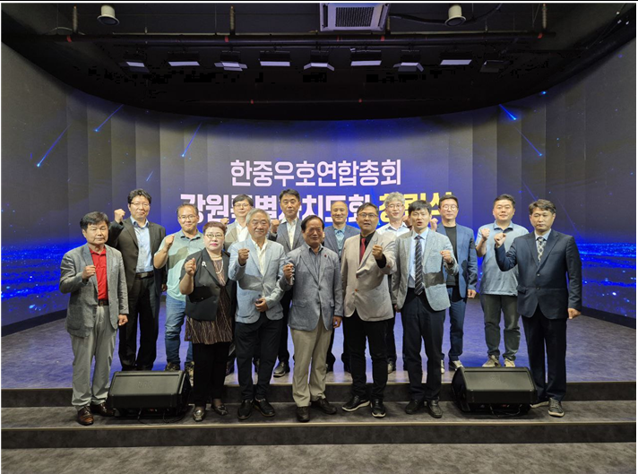 [세계타임즈]최성룡기자 = 14일(금), 오전 11시 춘천 강원글로벌디지털 스튜디오에서 한중우호연합총회(총회장 우수근) 강원특별자치도지회(지회장 권영화 / 이하, 강원지회) 개소식을 회원 및 주요 내빈 20여 명이 온/오프라인으로 참석한 가운데 성황리에 개최되었다.