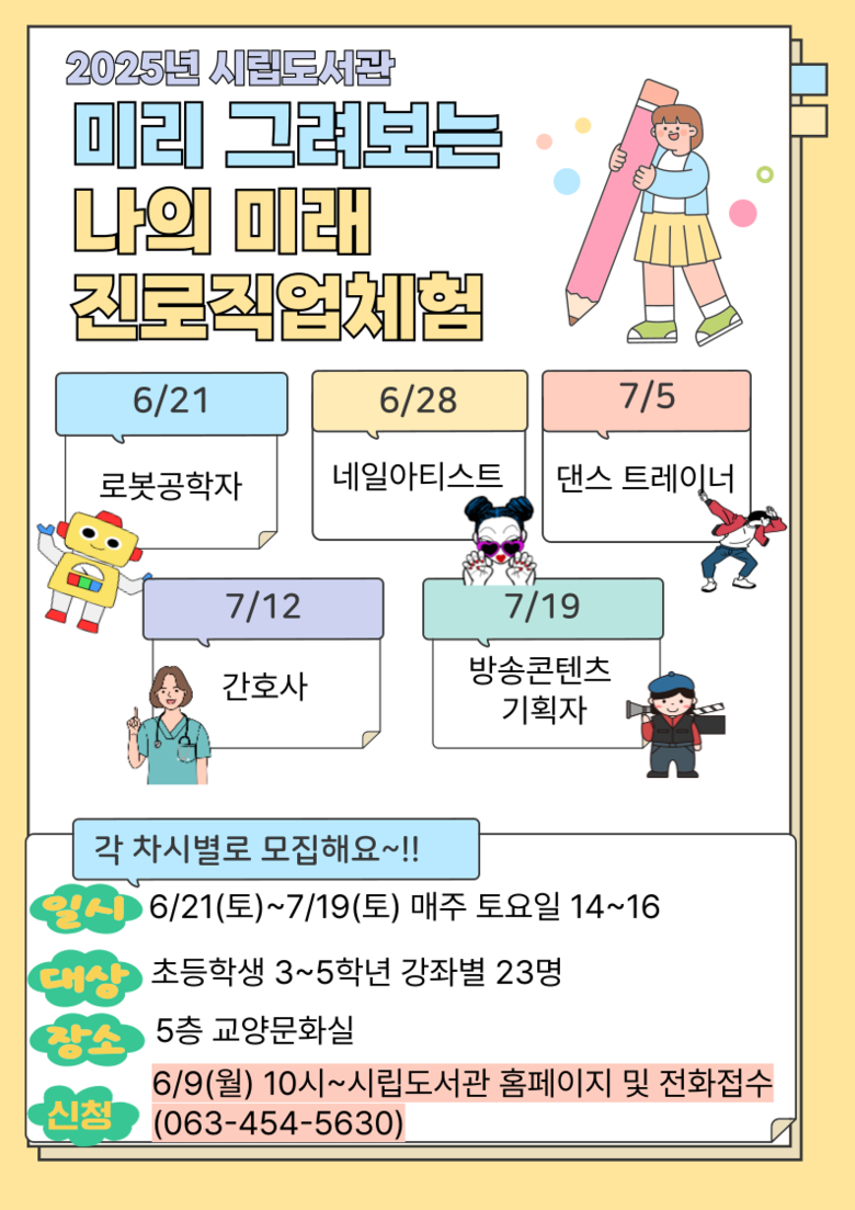 2025년 군산시립도서관 미리 그려보는 나의 미래 어린이 진로 직업체험 프로그램 운영