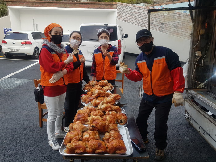 신상일 단장은 “코로나19로 아이들을 볼 수 없는 것이 아쉽지만 바비큐 통닭을 맛있게 먹고 건강하게 지내기를 바란다.”고 말했다.