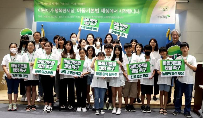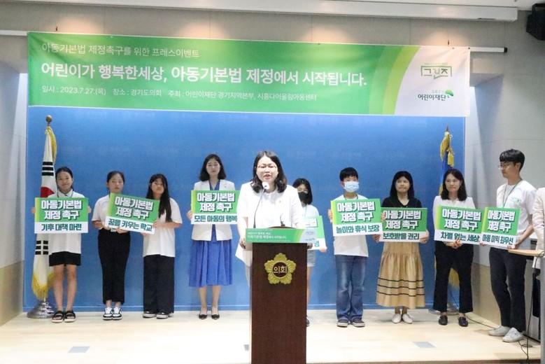 경기도의회 교육행정위원회 이자형 의원(더불어민주당, 비례)은 27일 경기도의회 브리핑룸에서 초록우산 어린이재단 아동권리옹호단 <그린즈>와 함께 아동기본법 제정을 촉구하는 기자회견을 진행했다.