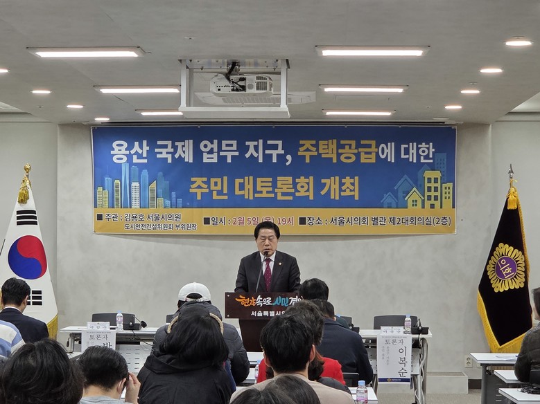 [서울 세계타임즈=이장성 기자] 서울특별시의회 도시안전건설위원회 부위원장으로 활동하고 있는 김용호 시의원(국민의힘, 용산1)은 지난 2월 5일 저녁7시 서울시의회 별관 제2대회의실에서「용산국제업무지구 주택공급에 대한 주민 대토론회」를 개최했다.
