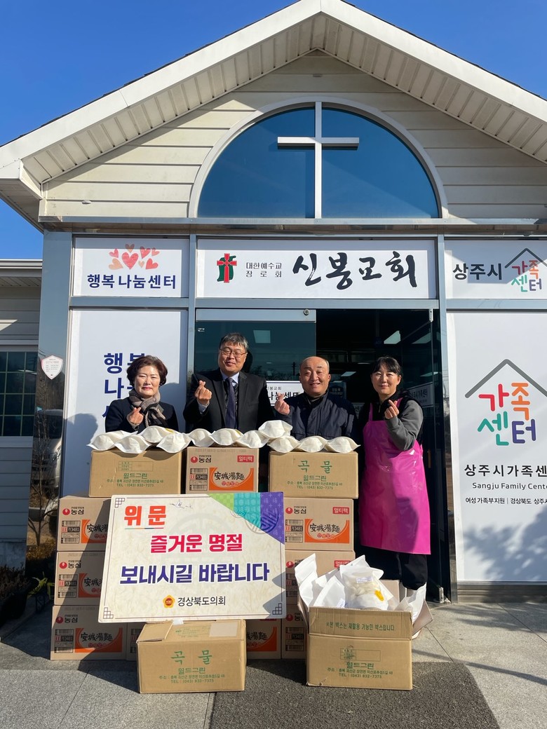지난 19일은 상주 남영숙, 김홍구 도의원이 상주시 소재‘행복나눔노인복지센터’와‘신봉교회 행복나눔복지센터 밥상공동체’를 찾아 도의회에서 준비한 위문품을 전달하고 관계자들을 격려했다.