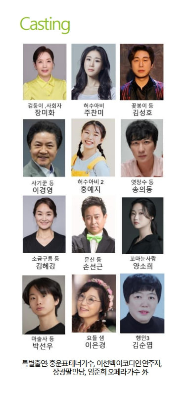 이외에도 허수아비 역에 뮤지컬 배우인 소프라노 주찬미와 테너 김성호가 각각 상대역으로 출연하며 무대의 깊이를 더한다.