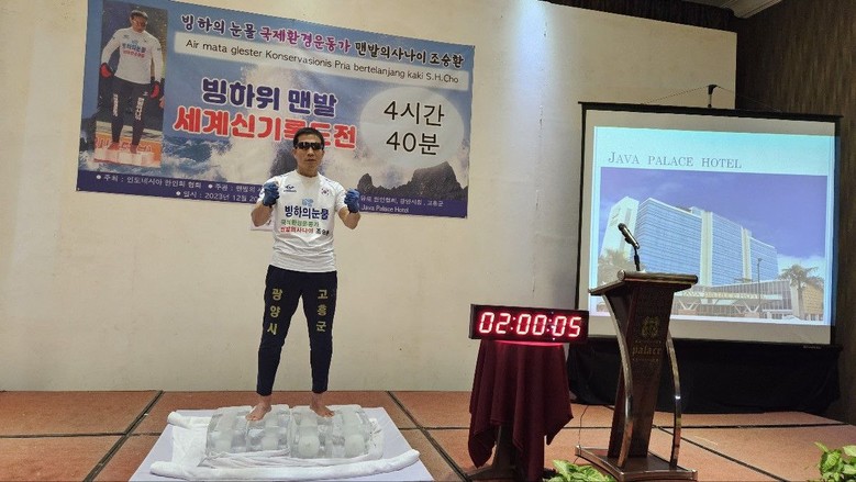 한국의 환경운동가 이자 맨발의 사나이로 불리는 조승환 씨는 2023년 12월20일 인도네시아 “JAVA PALACE HOTEL” 에서 맨발로 얼음위에 서있기 세계신기록 4시간40분에 성공했다.