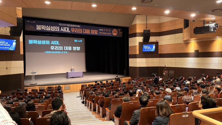 이번 강연은 “불확실성의 시대, 우리의 대응방향”이라는 주제로 진행됐으며, 급변하는 국제 정세와 기후 변화, 신기술 발전 등 다양한 글로벌 이슈 속에서 대한민국과 지역사회가 나아가야 할 방향을 모색하는 뜻깊은 자리였다.