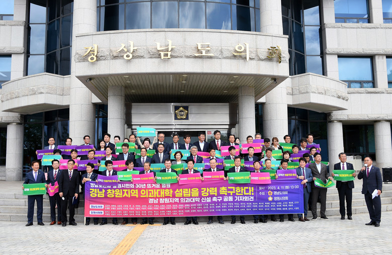 이처럼 창원지역 의과대학 유치전이 활기를 띄는 가운데, 경남도의회와 창원특례시의회 의원들이 뭉쳐 창원지역 의과대학 유치를 위한 필요성과 열망을 보여줬다.