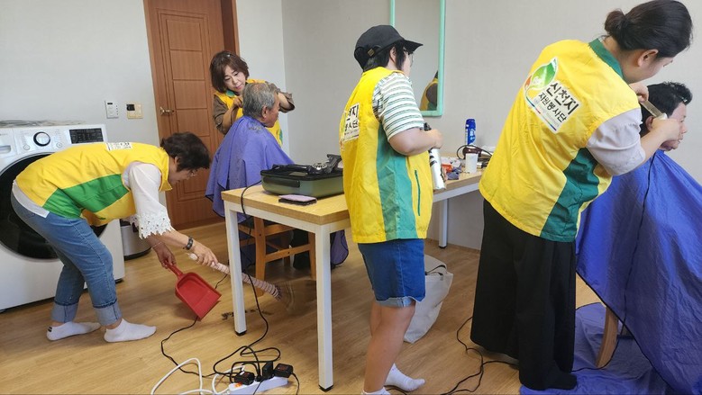 이날 봉사에는 정읍지부 소속 봉사자 10명이 참여해 20여 가구 주민들을 대상으로 커트 미용 봉사를 진행했다. 머리 손질과 함께 주민들과 담소를 나누며 정서적인 위로와 휴식의 시간을 제공했다.