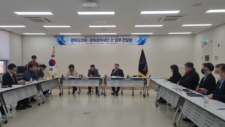 [경북 세계타임즈=한윤석 기자] 경상북도의회 정책지원담당관실은 행정보건복지분야의 의정활동 지원 전문화를 통한 의회 정책역량 강화를 위해 지난 1월 12일 구미에 위치한 ‘경상북도 행복재단’과‘새마을운동 테마공원’을 방문하여 현장에 있는 경상북도 출자ㆍ출연기관 관계자들의 생생한 목소리를 청취했다.
