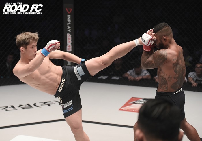 상대인 홍영기는 킥이 주특기다. 태권도 국가대표 상비군 출신으로 날카로운 킥을 수없이 보여줘왔다. ROAD FC 케이지에서 킥으로만 평가하면 홍영기는 둘째가라면 서러울 정도.
