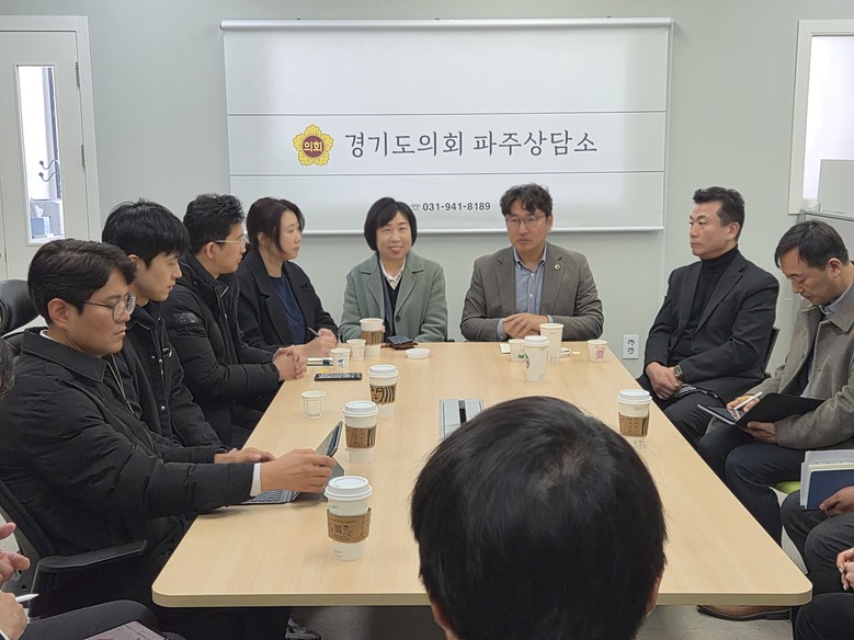 [경기도 세계타임즈=송민수 기자] 경기도의회 기획재정위원회 조성환 위원장(더불어민주당, 파주2)은 5일 파주상담소에서 경기도교육청 및 파주교육지원청 학생배치팀 관계자들과 정담회를 갖고, 파주 지역 중학교 학군 배정 문제의 근본적인 해결책을 논의했다. 이날 정담회에는 박은주 파주시의원을 비롯해 학부모 대표, 아파트연합회장 등이 참석해 현장의 목소리를 전달했다.