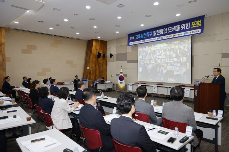 [광주 세계타임즈=손권일 기자] 광주시교육청(교육감 이정선)이 22일 광주광역시와 김대중컨벤션센터에서 ‘교육발전특구 발전방안 모색을 위한 포럼’을 개최했다.