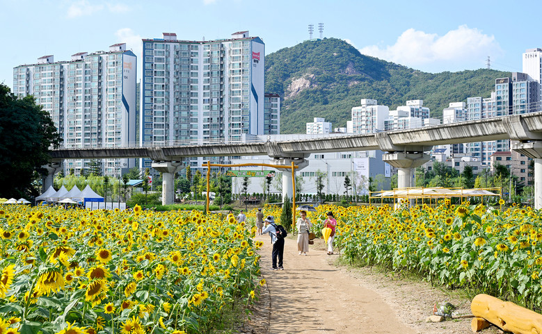 특히 경전철 효자역 바로 앞에 위치해 접근성이 뛰어나며, 경전철 라인과 아파트, 병원 등 생활권 한복판에서 꽃이 만개한 풍경을 만날 수 있다는 점에서 이색적인 장소로 주목받고 있다.