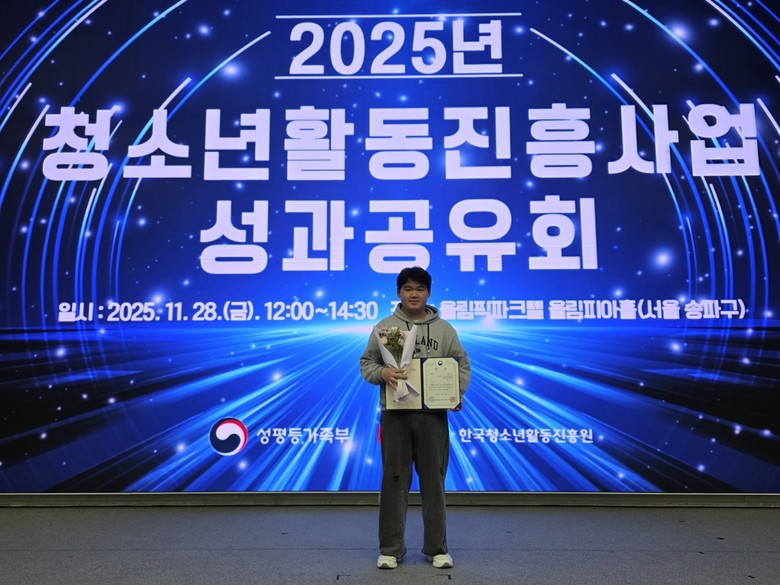 [순천시 세계타임즈=우덕현 기자] 순천시는 지난 28일 서울특별시 올림픽파크텔에서 열린 2025년 청소년활동진흥사업 통합 성과공유회에서 순천시청소년문화의집 방과후아카데미를 수료한 왕윤성 학생이 『2025년 청소년방과후아카데미 활동수기 공모전』 일반부문에서 성평등가족부 장관상(대상)을 수상하는 쾌거를 이뤘다고 밝혔다.