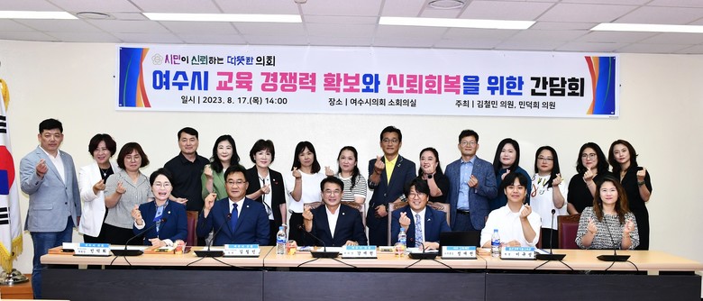 [여수시 세계타임즈=우덕현 기자] 지역의 열악한 교육 여건을 개선하고 인구유출을 막아야 한다는 목소리가 높은 가운데, 여수시의회(의장 김영규)는 17일 소회의실에서 ‘여수시 교육 경쟁력 확보와 신뢰회복을 위한 간담회’를 개최했다.