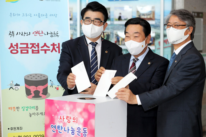 [충북=세계타임즈 이현진 기자] 충청북도의회 박문희 의장은 27일 ‘사랑의 연탄나눔 운동’ 순회모금 행사에 참여해 성금을 전달하고 관계자들을 격려했다.