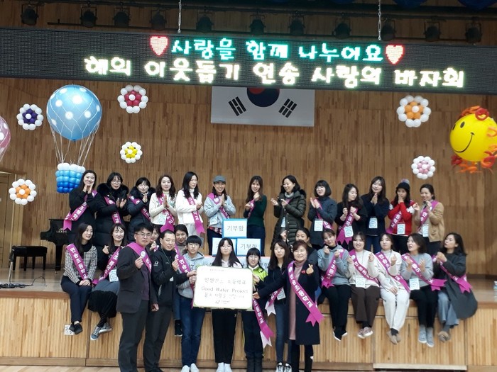 인천광역시 송도에 위치한 인천연송초등학교에서는 학부모회 주관으로 지구촌 이웃들을 돕기 위한 나눔 바자회를 개최하였다. 이번 나눔 바자회는 지역주민이 하나가 되어 바자회 물품을 기부하고 기부된 물품을 학부모회가 직접 판매하여 수익금 2,668,460원을 굿네이버스 식수위생지원사업‘굿 워터 프로젝트’에 지원하였다.