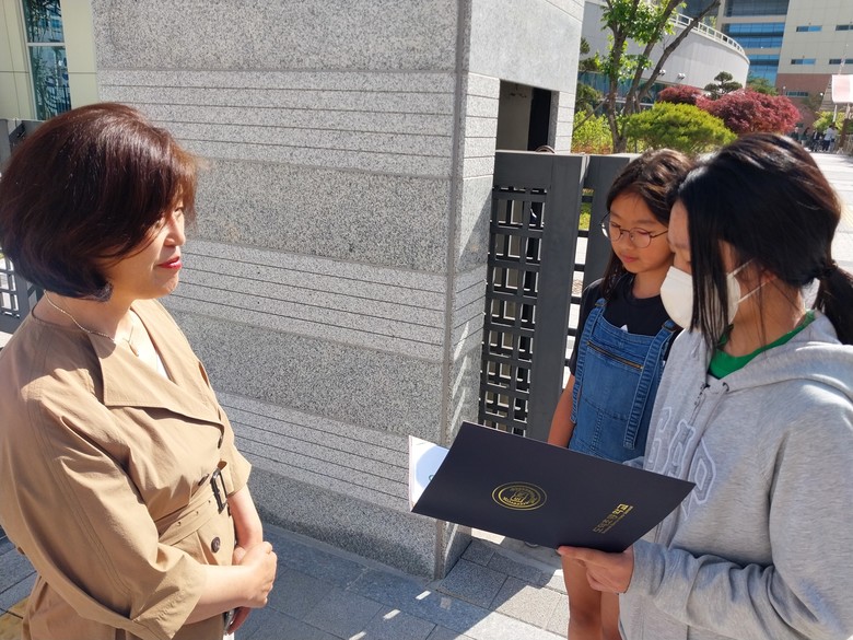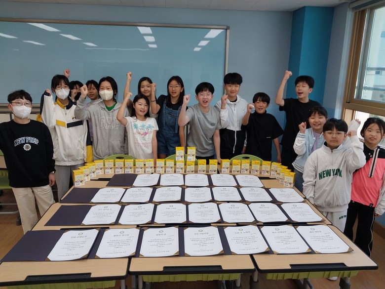 [광명시 세계타임즈=송민수 기자] 도덕초등학교 학생자치회에서는 선생님들을 위한 작은 이벤트를 준비했다. 학생자치회가 중심이 되어 스승의날에 선생님들께 드릴 상장 이름을 공모했다. 도덕의 ‘가디언상’, ‘젤리나눔상’, ‘잘생김 상상이상’등 교사별 재치있는 상장의 이름이 정해졌으며, 학생자치회 예산을 활용해 조그마한 선물을 함께 준비하여 아이들이 직접 선생님들에게 수여하였다.