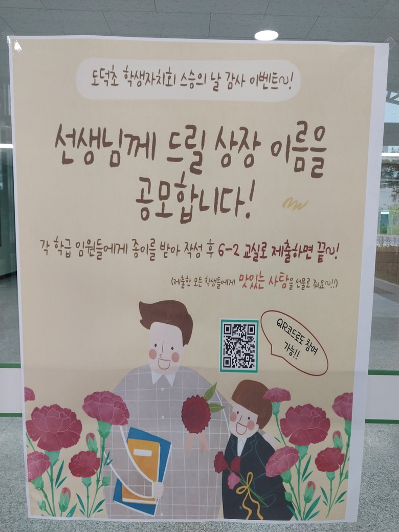◦ 학생자치회 주관, 스승의날 기념 선생님 상장 이름 공모