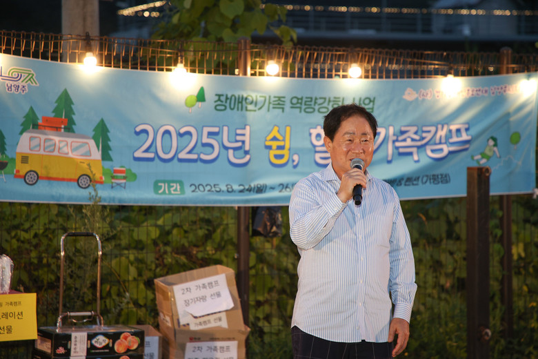 [남양주시 세계타임즈=송민수 기자] 주광덕 남양주시장이 25일 가평군 캠핑장에서 (사)경기장애인부모연대 남양주시지회(회장 김희중)가 주최한 ‘쉼, 힐링 가족캠프’에 방문해 발달장애 가족의 돌봄 지원을 강화하겠다고 밝혔다.