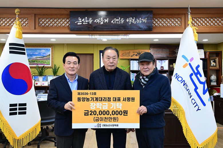 지난 26일 대교동에 위치한 동양농기계 논산시대리점에서 지역 인재 양성을 위한 장학금 2천만 원을 기탁했다. 서평원 대표는 “지역 학생들이 자신의 가능성을 마음껏 펼칠 수 있는 밑거름이 되기를 바란다”며 지역 인재 육성에 대한 뜻을 전했다.