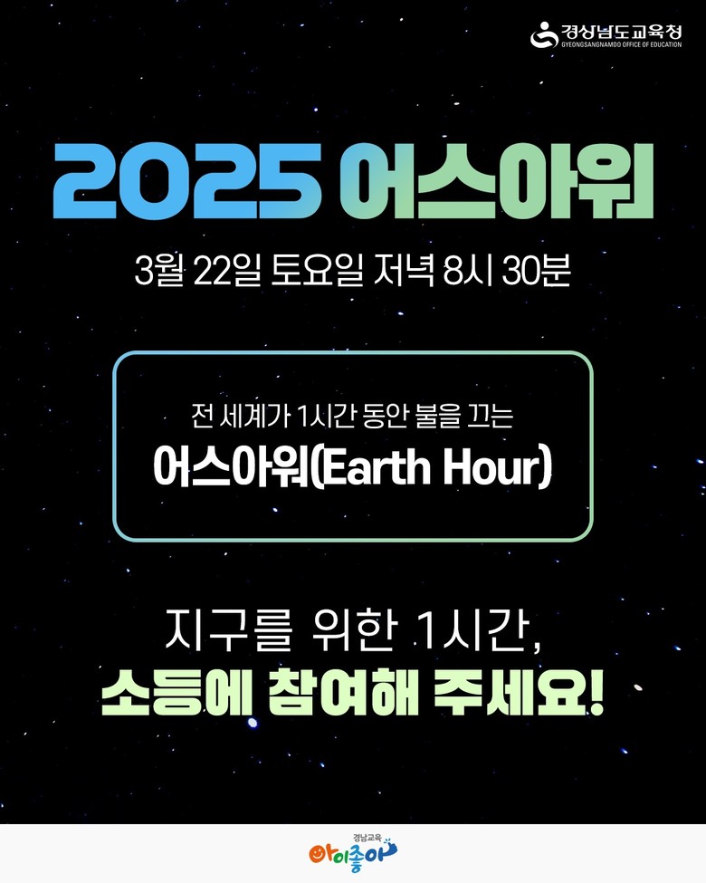 경남교육청은 지난해에 이어 올해도 오는 22일 토요일 저녁 8시 30분부터 1시간 동안 소등에 참여한다. 이런 생태전환교육을 통해 학생들이 공존의 가치를 배울 수 있도록 지속적으로 노력해 나갈 계획이다.