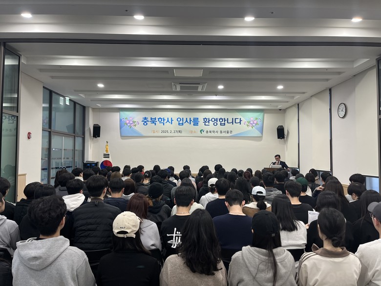 [충북 세계타임즈=이현진 기자] 충북학사(이사장 김영환)는 2025년 2월 27일 동서울관 대회의실에서 신입생 입사식을 개최하고 새로운 출발을 맞이한 신입생들을 환영했다.
