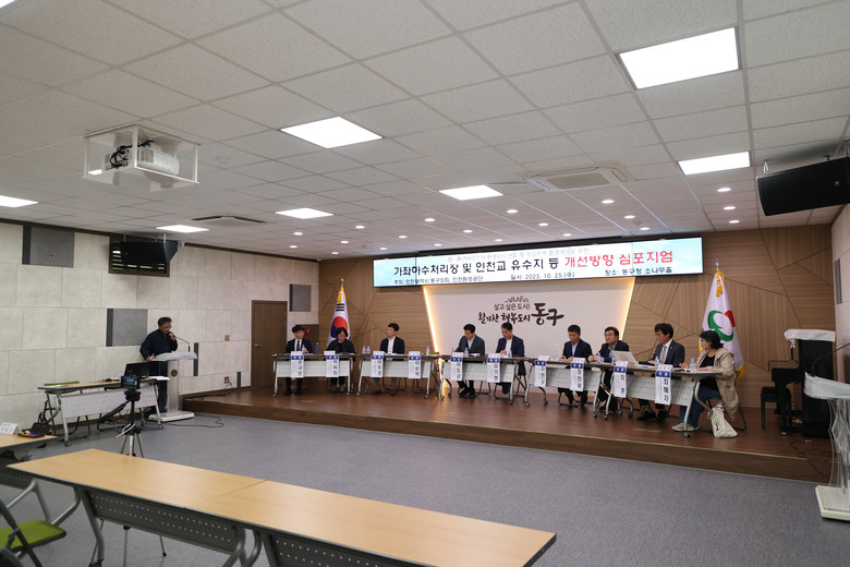 [동구 세계타임즈=심하린 기자] 인천광역시 동구의회(의장 유옥분)는 『가좌하수처리장 및 인천교유수지 등의 개선방향 심포지엄』을 10월 25일(수) 동구청 소나무홀에서 인천환경공단과 공동 개최했다고 밝혔다.