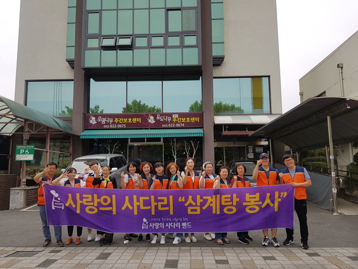 [대전=세계타임즈 이장성 기자] 다양한 봉사를 꾸준히 실천하고 있는 SNS 대전시 봉사단체 사랑의 사다리 밴드(리더 이정제)는 1일 오전11시, 대덕구 오정동에 위치한 중증장애인거주시설 로뎀(원장 김운중)에서 삼계탕 봉사로 우리 사회의 따뜻한 사랑을 전달하였다.