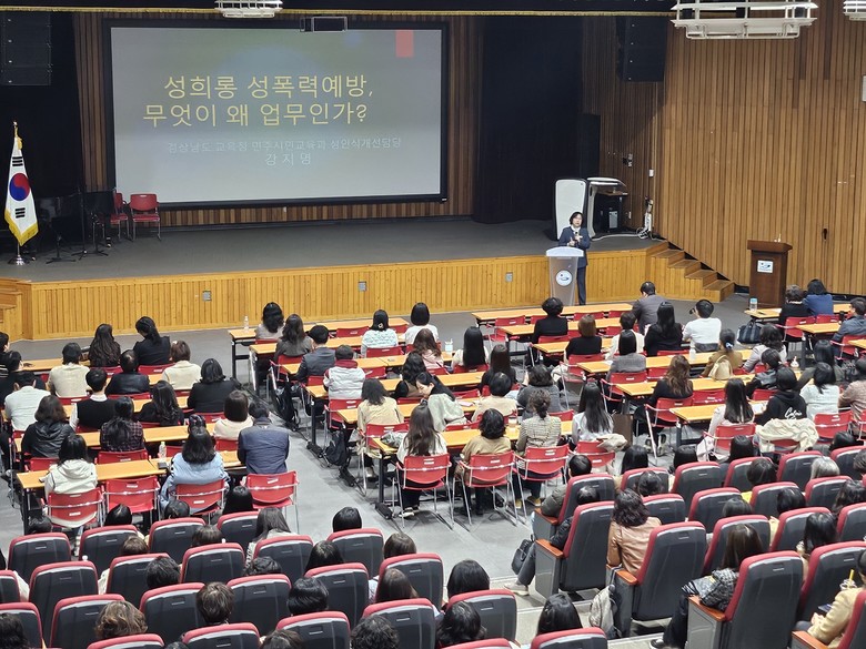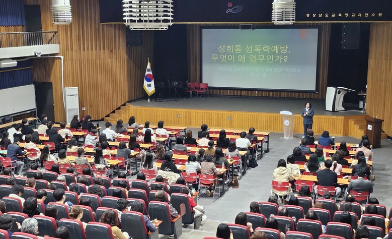 [경남 세계타임즈=최성룡 기자] 경상남도교육청(교육감 박종훈)은 21일 교육연수원 홍익관에서 본청 및 교육지원청, 직속 기관 업무 담당자 및 각 학교 희망자 350여 명을 대상으로, ‘성희롱.성폭력 예방, 무엇이 왜 업무인가?’라는 주제로, 회복적 정의*에 기반한 성희롱.성폭력 예방 및 2차 피해 방지 연수를 개최하였다.