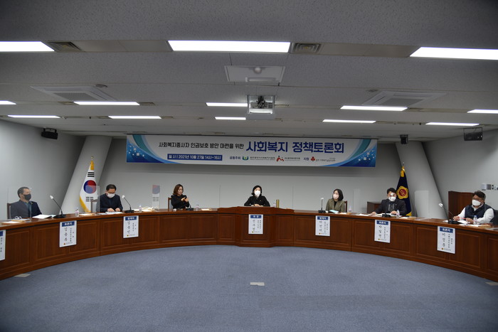 한편 이번 ‘사회복지종사자 인권 보호 방안 마련을 위한 정책토론회’에는 이선미 연구위원(광주복지연구원)와 김용민 교수(송원대학교 사회복지학과)가 발제를 하였고, 토론자로 김용목 대표((사)실로암사람들), 박일연 교수(호남신학대학교 사회복지상담학과), 박병훈 대표(톡톡브레인심리발달연구소), 이정훈 센터장(서울 감정노동 종사자 권리보호센터)이 참여하였다. 이번 ‘사회복지종사자 인권보호 방안 마련을 위한 정책토론회’는 『광주광역시의회 유튜브채널』을 통해 다시 시청할 수 있다.