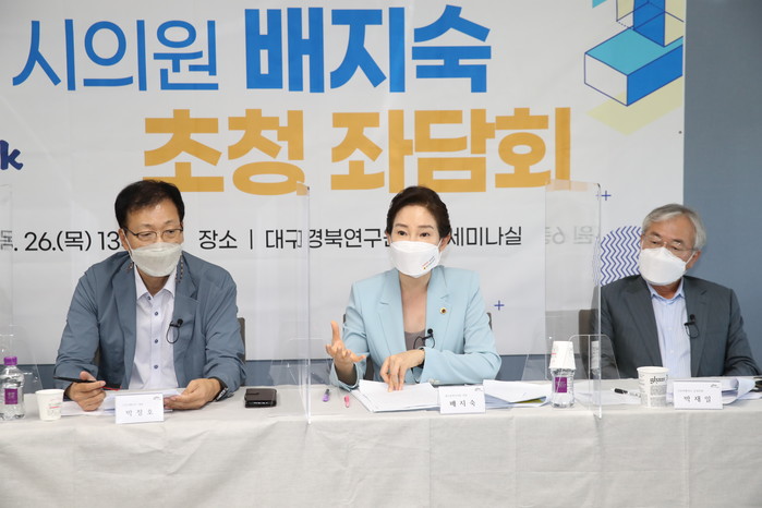 [대구=세계타임즈 한성국 기자] 대구광역시의회 배지숙 의원(문화복지위원회, 달서구6)은 8월 26일(목) 오후 대구경북연구원에서 열린 ‘배지숙 시의원 초청 좌담회’에 참석하여 대구시 복지 정책 발전 방향에 대해 토론하는 시간을 가졌다.