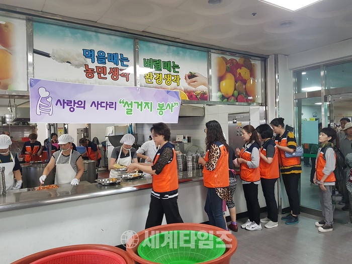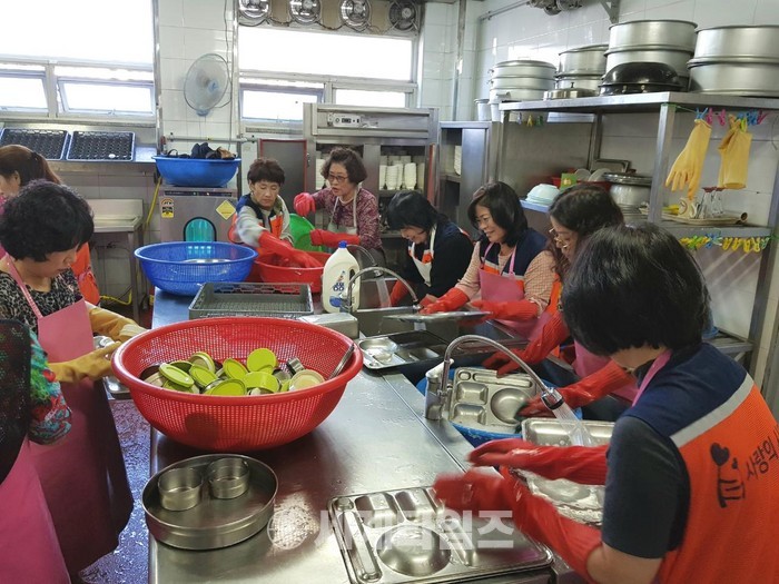 한 달에 한 번씩 설거지 봉사에 꾸준하게 참여하고 있는 전명순 회원은 “주방 안에서 설거지를 하면서 미약하지만 사회적 효행실천에 가정주부로서 보람과 행복을 느낀다.“고 말했다.