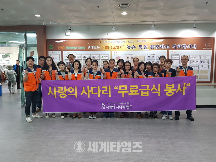[대전=세계타임즈 이장성 기자] 다양한 봉사활동을 하고 있는 5천명 봉사 빅밴드 사랑의 사다리 밴드(리더 이정제) 회원 20명은 21일 오전 11시40분부터 대전광역시 노인복지관(관장 유한봉)에서 500분의 어르신들 점심시간에 설거지 및 잔밥처리 봉사로 사회적 효행을 실천하였다.